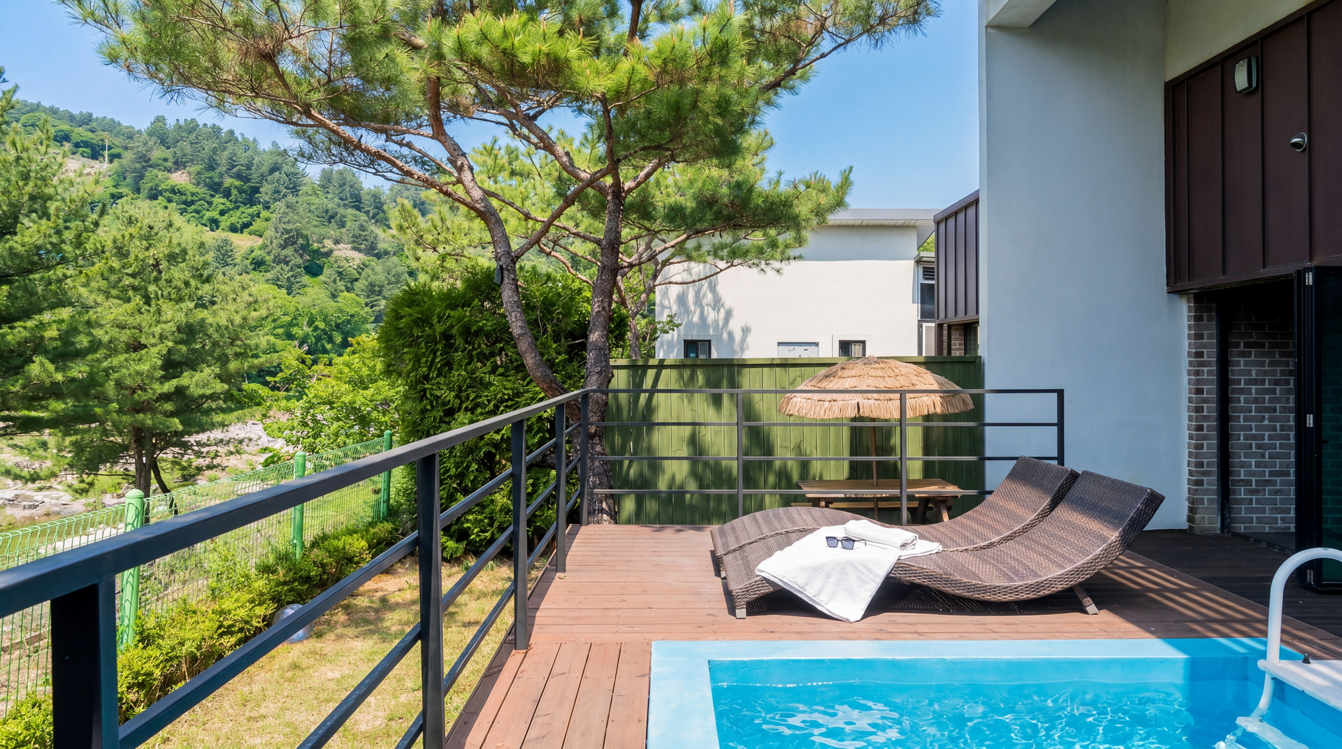 계곡과 숲의 분위기를 가까이 느끼며 편안하게 머무를 수 있습니다.